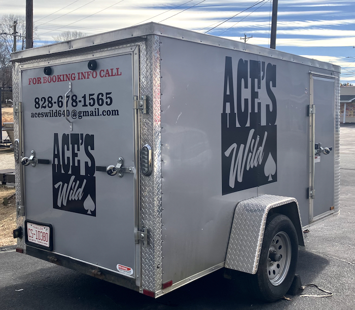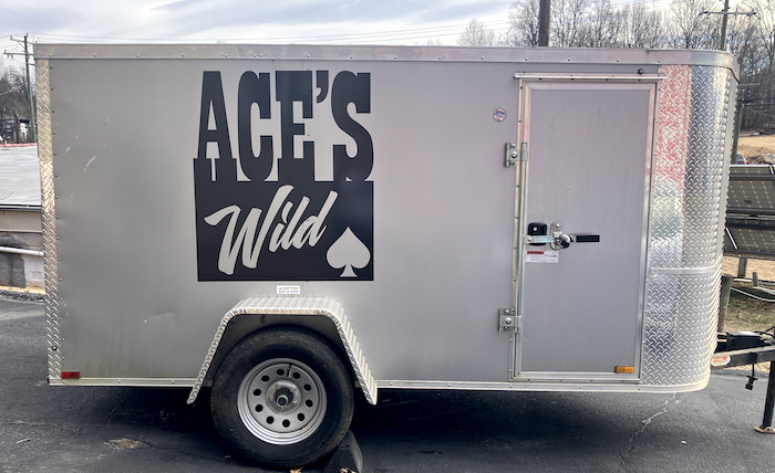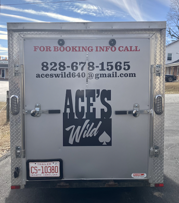 Jeff puts a finishing touch on Ace’s Wild new logo graphic. The new logo is part of our design team’s Branding Package – The band now has matching cards, posters, T-shirts, and decals in addition to the trailer graphics.